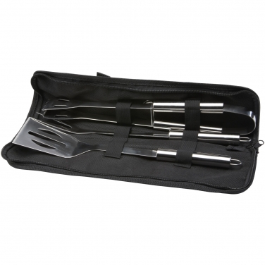 3-częściowy zestaw do grillowania z łopatką (34,8 x 7,5 cm), widelcem (35,4 x 3,35 cm) i szczypcami (35 x 6,8 x 4 cm). Wszystkie akcesoria są dostarczane w lekkim etui, aby ułatwić ich przenoszenie i przechowywanie. Idealne akcesoria do grillowania w ogrodzie lub do zabrania ze sobą na grilla na świeżym powietrzu z przyjaciółmi i rodziną.