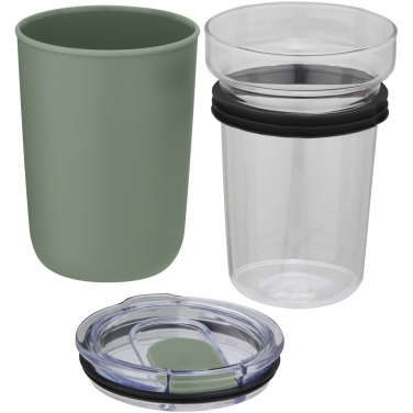 Szklany kubek Bello o pojemności 420 ml z zewnętrzną ścianką z plastiku z recyklingu
