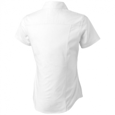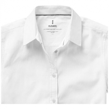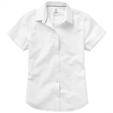 Koszula z krótkim rękawem damska Manitoba. Białe guziki z logo Elevate.Druga dziurka od guzika obszyta pomarańczową nicią.Logo nadrukowane na plecach w kolorze materiału.Satynowa lamówka wewnątrz na karku.Męska wersja z przypinanym kołnierzykiem. Oxford ze 100 % bawełny, 40x32/2, 110x50.