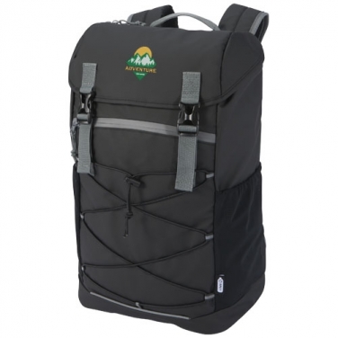 Wodoodporny plecak na laptopa wykonany z materiałów z recyklingu posiadających certyfikat GRS, w tym zamków błyskawicznych. Posiada przestronną przegrodę na laptopa o ekranie 15,6' ze sznurkiem ściągającym i regulowanymi klamrami, aby zmaksymalizować przestrzeń do przechowywania pod klapą. Ten plecak ma wiele kieszeni, w tym zapinaną na zamek przednią kieszeń z elastycznymi sznurkami do przechowywania i organizowania oraz odblaskowe lamówki zapewniające widoczność. Wyprofilowany i wyściełany spód oraz regulowany pasek na klatkę piersiową sprawiają, że jest wygodny do noszenia nawet, gdy jest w pełni załadowany. Materiały z recyklingu GRS obejmują główny materiał, podszewkę, taśmy i zamki błyskawiczne. Pojemność: 23 litrów. Wolne od PVC.