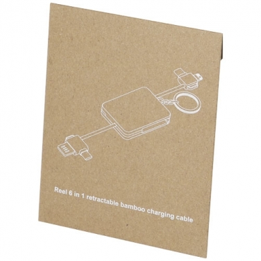 Bambusowy kabel do ładowania Reel 6 w 1 z brelokiem to przykład połączenia zrównoważonego rozwoju ze stylem. Ten kompaktowy i zwijany kabel TPE o długości 12 cm zapewnia moc ładowania 2 A bez plątaniny kabli. Wejście: USB A i typ C. Wyjście: Typ C, micro USB, micro USB 2 w 1 i podwójne końcówki Lightning kompatybilne z urządzeniami z systemem iOS i Android. Aluminiowe końcówki USB zapewniają bezpieczne i stabilne połączenie, gwarantując niezawodne ładowanie za każdym razem. Srebrny brelok ze stali nierdzewnej służy do wygodnego zwijania i przenoszenia kabla. Dostarczany w kopercie z papieru Kraft.