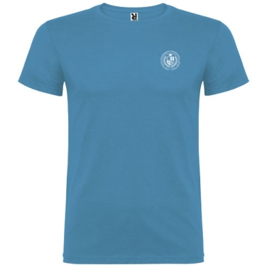 T-shirt z krótkim rękawem. Podwójna tkanina z dodatkiem elastanu przy kołnierzu. Wzmocnione, kryte szwy na karczku. Brak szwów bocznych w wersji dla dorosłych. Usuwalna metka.