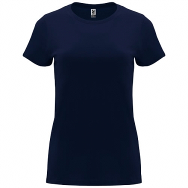 Damska dopasowana koszulka z krótkim rękawem. Okrągły prążkowany dekolt 1x1. Wzmocnione, kryte szwy na kołnierzu. Usuwalna metka.
