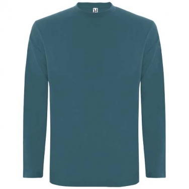 Koszulka z długim rękawem wykonana z materiału o strukturze rurkowej i 4-warstwowym okrągłym dekoltem. Wzmocnione kryte szwy w kołnierzu i ramionach. Brak mankietów. Usuwalna metka. Rurkowy krój w rozmiarach dla dorosłych i boczne szwy w rozmiarach dla dzieci.
