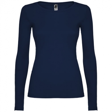 Częściowo dopasowana koszulka z długim rękawem i delikatnym wykończeniem przy szyi. Bez mankietów. Szwy boczne. Usuwalna metka.