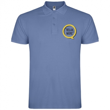 Męska koszulka polo z krótkim rękawem. Wzmocnione kryte szwy w wewnętrznym kołnierzyku. Prążkowane mankiety i kołnierzyk 1x1. Szwy boczne. Zapięcie na 3 guziki i boczne rozcięcia. Opcjonalna kieszeń. Usuwalna metka.