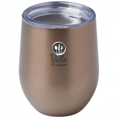 Corzo ze stali nierdzewnej z certyfikatem RCS z dwuścienną konstrukcją próżniową i miedzianą izolacją, która utrzymuje wysoką temperaturę napojów przez 6 godzin lub niską przez 24 godziny. Konstrukcja zapobiega kondensacji na zewnątrz kubka. Łatwe picie, pokrywa typu push-on. Farba proszkowa na zewnętrznej powłoce. Szeroki otwór dla wygodnego napełniania i opróżniania. Pojemność 350 ml. Zapakowana w pudełko upominkowe wykonane z kartonu z recyklingu.