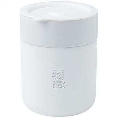 Java jednościenny kubek ceramiczny o prostej i praktycznej konstrukcji do codziennego użytku, jest wyposażony w silikonową osłonę zapewniającą wygodny chwyt. Wieczko zapobiegające rozlaniu płynu. Pojemność: 330 ml.
