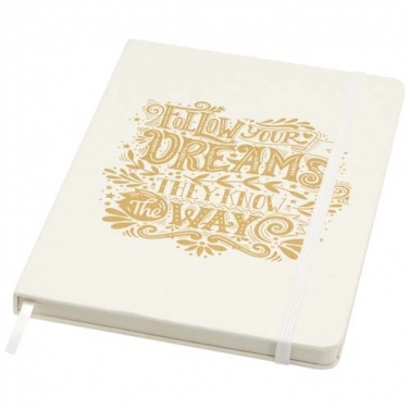 Notatnik Bass A5 w twardej okładce zawiera 80 papierowych kartek w linie o gramaturze 80 g/m2 i jest wykonany z przetworzonych kartonów na mleko.