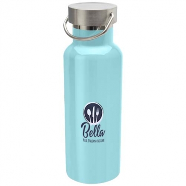 Wytrzymała butelka na wodę ze stali nierdzewnej z certyfikatem RCS i podwójnymi ściankami z izolacją próżniową, z zakręcaną pokrywką ze stali nierdzewnej i trwałym uchwytem ze stali nierdzewnej. Pojemność: 500 ml. Szczelne. Zapakowane w pudełko podarunkowe.
