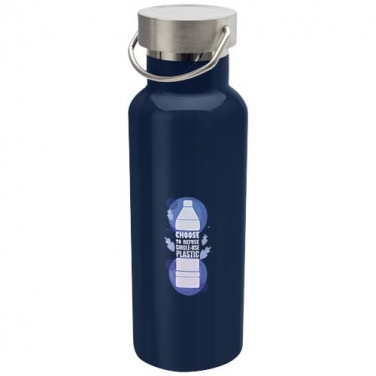 Wytrzymała butelka na wodę ze stali nierdzewnej z certyfikatem RCS i podwójnymi ściankami z izolacją próżniową, z zakręcaną pokrywką ze stali nierdzewnej i trwałym uchwytem ze stali nierdzewnej. Pojemność: 500 ml. Szczelne. Zapakowane w pudełko podarunkowe.