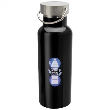 Wytrzymała butelka na wodę ze stali nierdzewnej z certyfikatem RCS i podwójnymi ściankami z izolacją próżniową, z zakręcaną pokrywką ze stali nierdzewnej i trwałym uchwytem ze stali nierdzewnej. Pojemność: 500 ml. Szczelne. Zapakowane w pudełko podarunkowe.