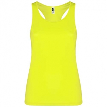 Techniczny, oddychający materiał, łatwy do prania i suszenia. Prążkowane otwory na ramiona i dekolt. Tył typu racerback i szwy boczne. Usuwalna etykieta.