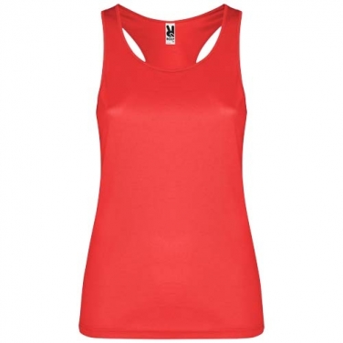 Techniczny, oddychający materiał, łatwy do prania i suszenia. Prążkowane otwory na ramiona i dekolt. Tył typu racerback i szwy boczne. Usuwalna etykieta.
