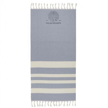 Ręcznik hammmam Anders zapewniający luksusowy komfort dzięki dużym wymiarom (147 x 75,5 cm) oraz dużą osłonę, niezależnie od tego, czy wylegujesz się przy basenie, czy spędzasz dzień na plaży.. Ręcznik ma eleganckie frędzle na obu końcach i jest wykonany z 30% bawełny, 35% bawełny z recyklingu z certyfikatem GRS i 35% poliestru z recyklingu z certyfikatem GRS, 180 g/m².