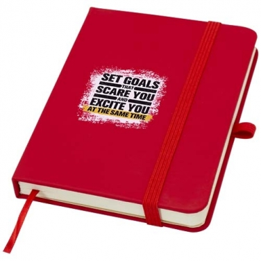 Notatnik Spectrum Plus w formacie A6 z twardą okładką i zaokrąglonymi rogami to nie tylko niezbędny element wyposażenia biura, ale także świetna okazja do promocji marki. Tekturowy notatnik ma miękką okładkę i 80 liniowanych, kremowych kartek o gramaturze 70 g/m². Jest idealny do zapisywania szybkich pomysłów lub dłuższych notatek. Notatnik jest wyposażony w szlufkę na długopis, elastyczne zamknięcie, wstążkową zakładkę i harmonijkową kieszonkę.