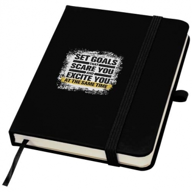 Notatnik Spectrum Plus w formacie A6 z twardą okładką i zaokrąglonymi rogami to nie tylko niezbędny element wyposażenia biura, ale także świetna okazja do promocji marki. Tekturowy notatnik ma miękką okładkę i 80 liniowanych, kremowych kartek o gramaturze 70 g/m². Jest idealny do zapisywania szybkich pomysłów lub dłuższych notatek. Notatnik jest wyposażony w szlufkę na długopis, elastyczne zamknięcie, wstążkową zakładkę i harmonijkową kieszonkę.