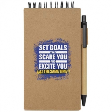 Karteczki samoprzylepne z długopisem Notatnik zawiera 30 kartek białego papieru w linie o gramaturze 70 g/m2(8 x 12 cm). W zestawie znajduje się również 25 kolorowych (5 x 1,2 cm) i 25 żółtych (7,5 x 7,5 cm) karteczek samoprzylepnych, oba rodzaje wykonane z papieru o gramaturze 70 g/m2. Korpus długopisu wykonany jest z papieru pochodzącego z recyklingu. Kolor tuszu: Czarny. Żywotność: 1000 metrów. Rozmiar stalówki: 1,00 mm.