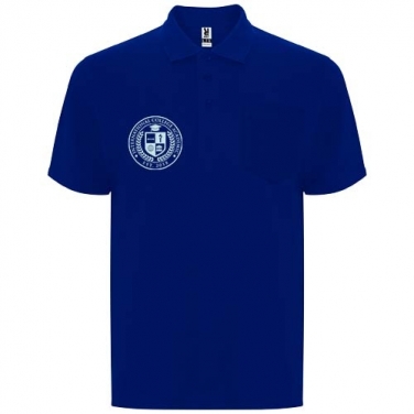 Koszulka polo z krótkim rękawem i kieszenią na lewej piersi. Kołnierz i mankiety z prążkowanego materiału 1x1 z detalami. Zapięcie na 3 guziki. Wzmocnione kryte szwy w kołnierzu. Usuwalna etykieta. Obróbka zapobiegająca mechaceniu się.
