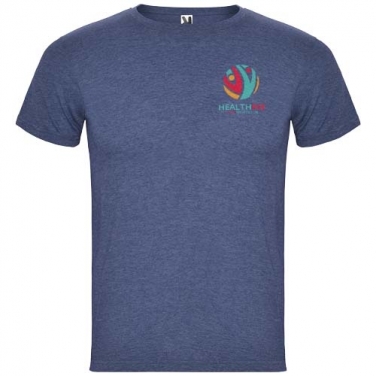 T-shirt z krótkim rękawem i efektem melanżu. Okrągły dekolt wykończony ściągaczem 1x1 z wewnętrznymi wzmocnionymi szwami. Materiał rurkowy. Usuwalna etykieta.