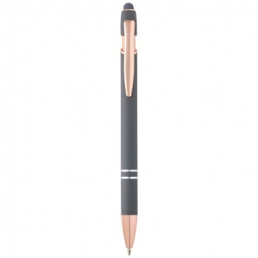 Długopis Nanna z wykończeniem w kolorze różowego złota ma korpus wykonany z aluminium z recyklingu i rysik dotykowy wykonany z silikonu. Aluminium z recyklingu ogranicza ilość odpadów na wysypiskach śmieci i pomaga chronić zasoby naturalne w celu zmniejszenia emisji gazów cieplarnianych. Kolor tuszu: Czarny. Żywotność: 800 metrów. Rozmiar stalówki: 1,0 mm.