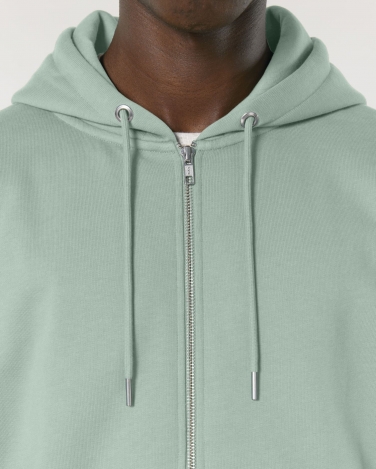 Wszywane rękawy Podwójnie podszyty kaptur z głównego materiału Okrągłe sznurki w głównym materiale Metalowe końcówki i oczka Taśma w chevronie na wewnętrznym szwie kołnierza Półksiężyc z głównego materiału na karku Podwójne szwy wzdłuż szwów na dole, mankietach i pachach Ściągacz 1x1 przy mankietach i u dołu Kieszeń kangurka z przodu Widoczny metalowy zamek błyskawiczny na środku z przodu