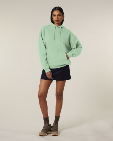Wszywany rękaw Podwójna warstwa kaptura z tego samego materiału Płaski sznurek w kolorze materiału Haftowane oczka Podwójne szwy na wszystkich szwach Ściągacz 2x1 przy mankietach i u dołu Kieszeń kangurka z przodu Wzmocnienie w chevronie wewnątrz kołnierza Półksiężyc z tego samego materiału na karku