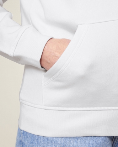 Wszywane rękawy Kaptur podszyty dopasowanym materiałem Płaskie sznurki w kolorze materiału Haftowane oczka przy guzikach Ściągacz 1x1 przy mankietach i na dole Kieszeń kangurka z płaskimi szwami Widoczny metalowy zamek z przodu Płaskie szwy trzyigłowe na wszystkich szwach Taśma w chevronie wewnątrz kołnierza i zamka Półksiężyc z dopasowanego materiału wewnątrz kołnierza