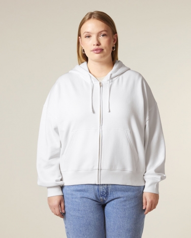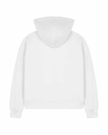 Wszywane rękawy Opadające ramiona Podwójnie podszyty kaptur z tego samego materiału Płaski sznurek w kolorze materiału Haftowane oczko Metalowy zamek błyskawiczny ukryty na środku z przodu Ściągacz 1x1 przy kołnierzu, mankietach i u dołu Podwójne szwy na wszystkich szwach Grosgrain wewnątrz kołnierza Półksiężyc z tego samego materiału na karku