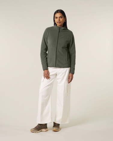 Wszywane rękawy Elastyczna lamówka przy krawędzi kołnierza, mankietach i dole Pętla z taśmy grosgrain wewnątrz kołnierza z tyłu Zamek błyskawiczny spiralny z nylonu z metalowym suwakiem i końcówką sznurka Szczotkowany materiał z wykończeniem antymechacącym wewnątrz i na zewnątrz Kieszenie z lamówką z przodu z zamkiem błyskawicznym Wzmocnienie na karku z poliestru z recyklingu