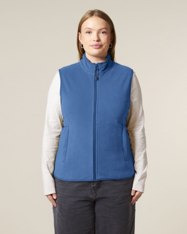 Bez rękawów Elastyczne wykończenie krawędzi przy szyi, otworu na ramię i dołu Pętelka z taśmy rypsowej wewnątrz na karku Zamek błyskawiczny z nylonowej cewki z metalowym uchwytem i zakończeniem ze sznurka Szczotkowany materiał z wykończeniem przeciwmechaceniowym po wewnętrznej i zewnętrznej stronie Boczne kieszenie z przodu z otworem na zamek Taśma na karku wewnątrz z recyklingowanego poliestru