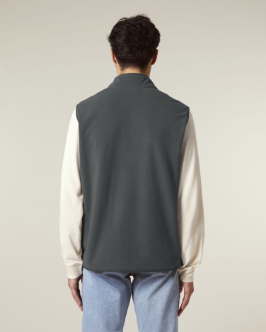 Bez rękawów Elastyczne wykończenie krawędzi przy szyi, otworu na ramię i dołu Pętelka z taśmy rypsowej wewnątrz na karku Zamek błyskawiczny z nylonowej cewki z metalowym uchwytem i zakończeniem ze sznurka Szczotkowany materiał z wykończeniem przeciwmechaceniowym po wewnętrznej i zewnętrznej stronie Boczne kieszenie z przodu z otworem na zamek Taśma na karku wewnątrz z recyklingowanego poliestru