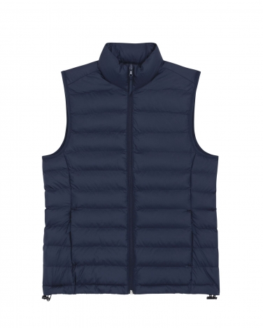 Bez rękawów Wysoki kołnierz Odwrócony zamek błyskawiczny z nylonu na środku z przodu Kieszenie z lamówką zapinane na zamek z taśmą grosgrain Elastyczny brzeg przy otworach na ręce Całość pikowana Boczne wstawki dla lepszego dopasowania Wykończone wewnętrzne szwy Dół regulowany plastikowym stoperem i elastycznym sznurkiem