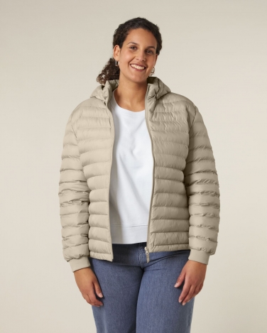 Wszywane rękawy Wysoki kołnierz z odpinanym kapturem i ukrytymi matowymi metalowymi napami Kaptur i dół regulowane plastikowym stoperem i elastycznym sznurkiem Odwrócony zamek błyskawiczny z nylonu na środku z przodu Kieszenie z lamówką zapinane na zamek z taśmą grosgrain Całość pikowana Boczne wstawki dla lepszego dopasowania Miękki ściągacz 1x1 u dołu Wykończone wewnętrzne szwy