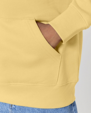 Wszywane rękawy Podwójnie podszyty kaptur z tego samego materiału Taśma wzmacniająca na karku z prostego dżerseju Półksiężyc z tego samego materiału na karku z podwójnym szwem 3 mm Prostokątny szew na dekolcie Ściągacze 1x1 przy mankietach i u dołu Podwójny szew na dole, mankietach i pachach Kieszeń kangurka z pojedynczym szwem 3 mm