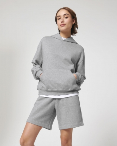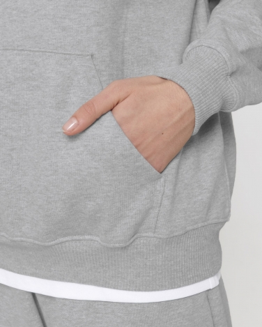 Wszywane rękawy Podwójnie podszyty kaptur z tego samego materiału Taśma wzmacniająca z prostego dżerseju wewnątrz kołnierza Wstawka „półksiężyc” z tego samego materiału wewnątrz kołnierza Prosty szew przy dekolcie i wzdłuż kaptura Ściągacz 2x1 u dołu rękawów i u dołu bluzy Podwójne szwy na pachach, u dołu rękawów i bluzy Kieszeń kangurka z przodu