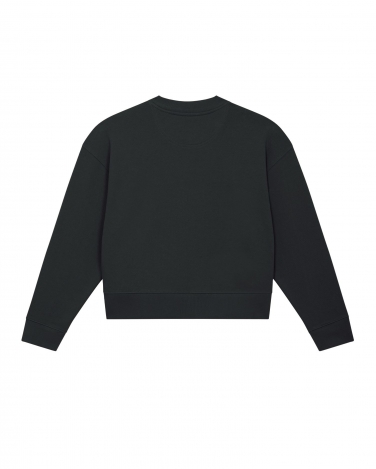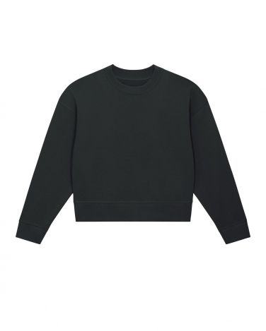 Set-in sleeve 1x1 rib at neck collar, sleeve hem and bottom hem Inside herringbone back tape Self fabric half moon at back neck Twin needle topstitch on all seams
