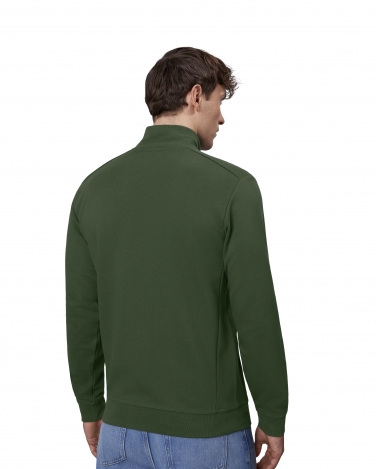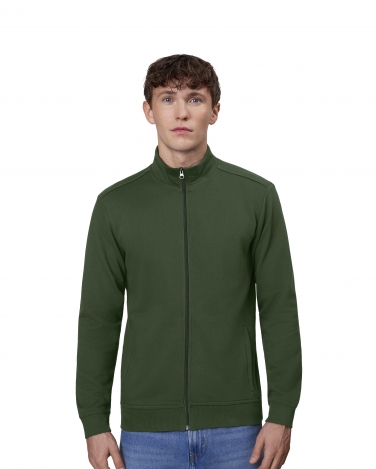 Trwały kardigan dresowy z certyfikatem „europejski kwiat” i nieszczotkowaną stroną wewnętrzną. Dodatkowe wzmocnienia na ramionach i na szwie na karku. Podwójne szwy i ściągacze przy rękawach i w części dolnej. Kieszenie boczne z zamkiem błyskawicznym YKK. Wykonany z bawełny pozyskiwanej w odpowiedzialny sposób i poliestru z recyklingu, został poddany procesowi dekatyzacji w bardzo wysokich temperaturach zarówno przed, jak i po barwieniu, aby zapewnić dodatkową stabilność i trwałość.