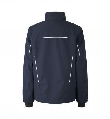 Wyjątkowa funkcjonalna kurtka z wyraźnymi paskami odblaskowymi, w jakości ID Tech®, z wodoodpornym, niezawierającym fluoru wykończeniem BIONIC-FINISH® ECO i z klejonymi szwami. Kurtka jest wiatro- i wodoodporna. Wyposażona jest ponadto w praktyczny dwukierunkowy zamek YKK z ukrytymi zatrzaskami YKK oraz wysoki kołnierz z chowanym regulowanym kapturem. Ukryty ściągacz w rękawie skutecznie chroni przed wiatrem. Praktyczna kieszeń wewnętrzna wyposażona jest w zamek YKK. Dzięki umieszczeniu zamka błyskawicznego w podszewce kurtka umożliwia nałożenie nadruku. Polarowe produkty Zip-n-Mix (0806, 0847, 0780 i 0792) można z powodzeniem łączyć z kurtką membranową jako warstwą izolującą. Dostępne są również spodnie zewnętrzne (0714) w tej samej jakości.
