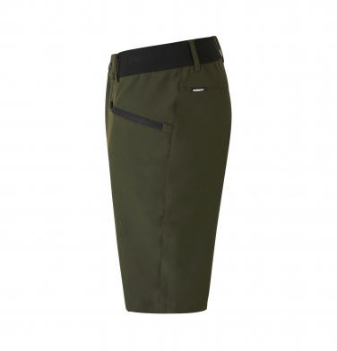 Sportowe, casualowe szorty stretch z lekkiego i miękkiego materiału. Gumki w pasie zapewniają komfort i elastyczność. Paski talii oraz paski na klucz/kartę. Wyraźne zamki błyskawiczne YKK w kieszeniach przednich i udowych. Regularny krój.