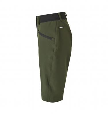 Sportowe, casualowe szorty stretch z lekkiego i miękkiego materiału. Gumki w pasie zapewniają komfort i elastyczność. Paski talii oraz paski na klucz/kartę. Wyraźne zamki błyskawiczne YKK w kieszeniach przednich i udowych. Regularny krój.