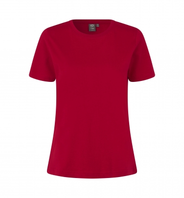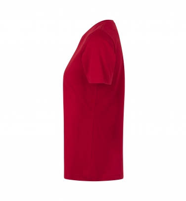 Klasyczny t-shirt z kobiecym okrągłym dekoltem, poczwórnym ściągaczem na linii szyi i taśmą na karczku i ramionach. Zachowuje swój kształt nawet po wielokrotnym praniu.