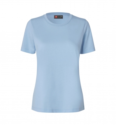 Damska koszulka z miękkiego materiału Lyocell single jersey. Klasyczny okrągły dekolt. Wykonana z włókien Lyocell i poliestru z recyklingu. Naturalny Lyocell zapewnia wysoki komfort, właściwości antybakteryjne oraz naturalną funkcję szybkiego schnięcia.