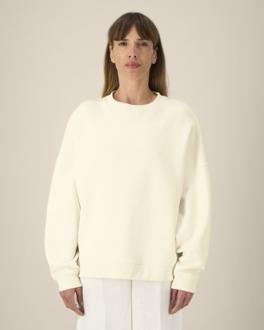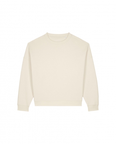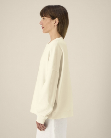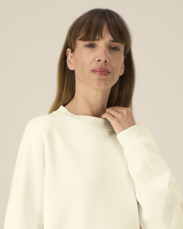 Ściągacz 1x1 przy dekolcie, na mankietach i u dołu Taśma wzmacniająca na karku w jodełkę Półksiężyc z tego samego materiału na karku Wszywane rękawy Przesunięte do przodu szwy boczne Podwójne stebnowanie na wszystkich szwach