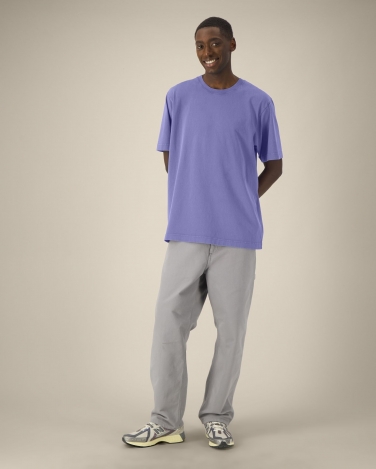 Kołnierzyk ze ściągacza 1x1 Taśma wzmacniająca na karku z tego samego materiału Wszywane rękawy Podwójne stebnowanie na mankietach i u dołu Lekko teksturowana powierzchnia dzięki procesowi prania Efekt sprania na szwach Produkt barwiony po uszyciu: każda sztuka jest unikatowa, możliwe niewielkie różnice w kolorze Przestrzegać zaleceń dotyczących nadruku