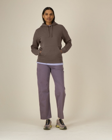 Dwuwarstwowy kaptur z tego samego materiału Płaski sznurek w kolorze materiału Haftowane oczka Taśma wzmacniająca na karku w jodełkę Półksiężyc z tego samego materiału na karku Wszywane rękawy Kieszeń typu kangurka z podwójnym stebnowaniem Ściągacz 1x1 na mankietach i u dołu Szwy typu flatlock (płaskie) na całej powierzchni