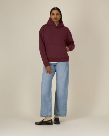 Dwuwarstwowy kaptur z tego samego materiału Bez sznurka Taśma wzmacniająca na karku w jodełkę Półksiężyc z tego samego materiału na karku Wszywane rękawy Ściągacz 1x1 na mankietach i u dołu Podwójne stebnowanie na ramionach, przy wykroju pach, na mankietach i u dołu