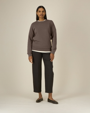 Ściągacz 1x1 przy dekolcie, na mankietach i u dołu Taśma wzmacniająca na karku w jodełkę Półksiężyc z tego samego materiału na karku Wszywane rękawy Szwy typu flatlock (płaskie) na całej powierzchni