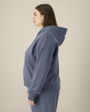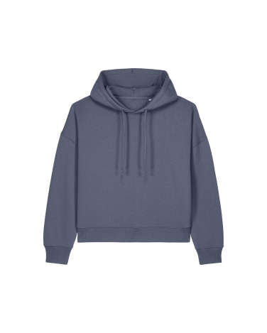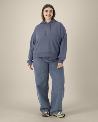 Dwuwarstwowy kaptur z tego samego materiału Płaski sznurek w kolorze materiału Haftowane oczka Taśma wzmacniająca z rypsu (grosgrain) Półksiężyc z tego samego materiału na karku Wszywane rękawy z obniżoną linią ramion Ściągacz 1x1 na mankietach i u dołu Podwójne stebnowanie na wszystkich szwach