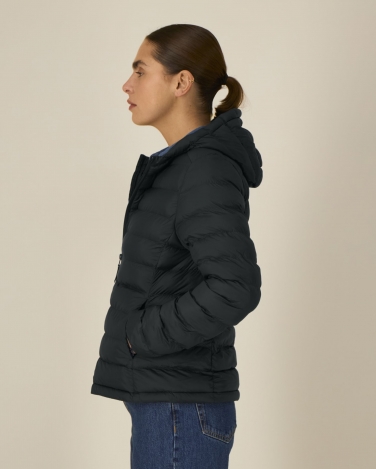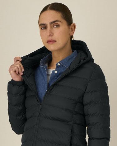 Stójka z zintegrowanym kapturem Odwrócony zamek nylonowy na środku przodu Wszywane rękawy Kieszenie z wypustkami zapinane na zamek z uchwytami z rypsu Elastyczne mankiety z tego samego materiału Panele boczne dla lepszego dopasowania Regulowany otwór kaptura i dół z elastycznym sznurkiem i plastikowymi stoperami W pełni watowana Wszystkie szwy wewnętrzne wykończone lamówką z recyklingu